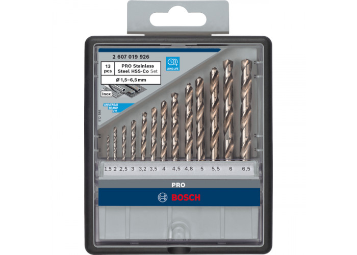 Опис набору 13 свердел Bosch PRO Stainless Steel HSS-Co 1.5-6.5 мм:
