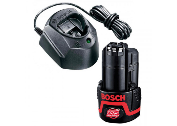 Набір Bosch складається із акумулятора GBA 12 V 0-B (ємністю 2 Ah, артикул 1600Z0002X) і зарядним пристроєм GAL 1210 CV (артикул 1600A00HR1). Стане комплект у пригоді для живлення інструментів професійної серії із напругою 10.8 В або 12 В. Літій-іонна батарея із захистом від перегрівання та глибокого розряджання. Зарядний струм дорівнює 1 А.