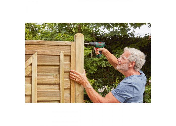Акумуляторний дриль-шурупокрут Bosch EasyDrill 1200 працює в двохшвидкісному режимі 0-400 і 0-1500 об/хв. Використовує літій-іонний акумулятор 12 В. 20+1 рівнів регулювання крутного моменту 14/30 Нм. Швидкозатискний патрон 10 мм. Особливість комплектації — зручний пластиковий кейс, без акумулятора та зарядного пристрою.