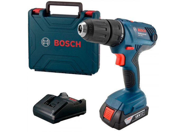 Бездротовий дриль-шурупокрут Bosch GSR 180-LI Professional працює в двохшвидкісному режимі 0-450 і 0-1700 об/хв. Крутний момент має 20+1 ступені регулювання з 21/54 Нм. Швидкозатискний патрон 13 мм. Особливість комплектації — один елемент живлення 18 В 2 А/год, зарядний пристрій GAL 18V-20, зручний кейс для зберігання.