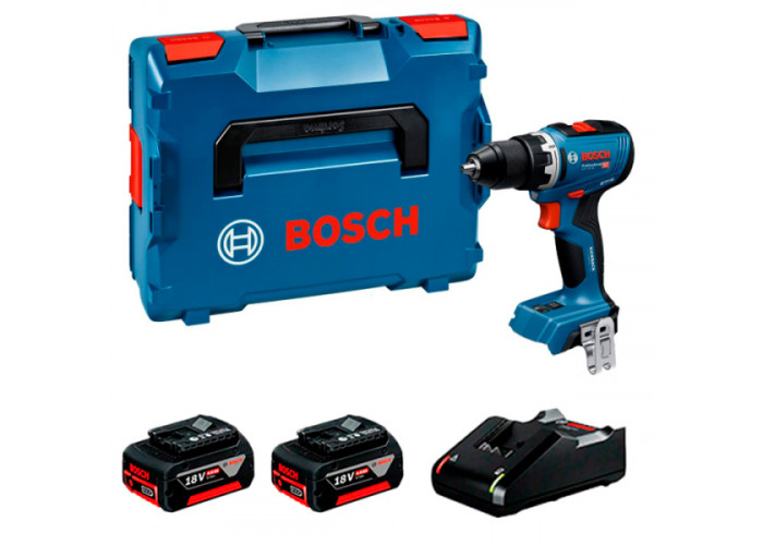 Bosch Professional GSR 18V-65 — це потужний акумуляторний дриль-шурупокрут для професійного використання. Оснащений безщітковим двигуном, розвиває крутний момент до 63 Нм і підтримує дві швидкості обертання до 2100 об/хв. Є система KickBack Control запобігання зворотного удару. Поставляється в кейсі L-BOXX з 2-ма акумуляторами GBA 18V 4.0Ah і зарядним пристроєм GAL 18V-40.