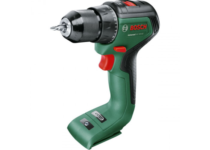 Акумуляторний інструмент Bosch UniversalDrill 18V-60 поєднує у собі функції дриля та шурупокрута. Живиться від літій-іонної батареї на 18 В (в комплекті не постачається). Оснащений апарат безщітковим двигуном, швидкозатискним патроном, діаметр якого 13 мм. Налаштовується крутний момент в 1 позицію із 20, максимальне значення становить 60 Нм. Двошвидкісний редуктор розвиває 0-500 об/хв та 0-1900 об/хв. Важить дриль-шурупокрут 1.3 кг. Доставляється він у кейсі з акумулятором, зарядним пристроєм.