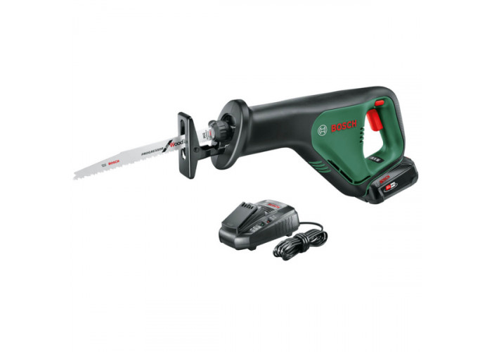 Шабельна пила Bosch AdvancedRecip 18 легка у використанні, має ергономічну форму, SDS-кріплення для швидкої заміни пиляльного полотна (без використання інструментів). Напруга акумуляторної пилки — 18 В. Максимальна кількість обертів двигуна — 3100 об/хв. Хід робочого полотна — 23 мм. Ефективно ріже деревину (100 мм), сталь і пластмасу (по 20 мм). Важить інструмент із батареєю 2.5 кг. Доставляється разом із літій-іонним акумулятором PBA 18V 2.5 Ач, зарядним пристроєм AL 1830 CV та пиляльним полотном S 3456 XF.