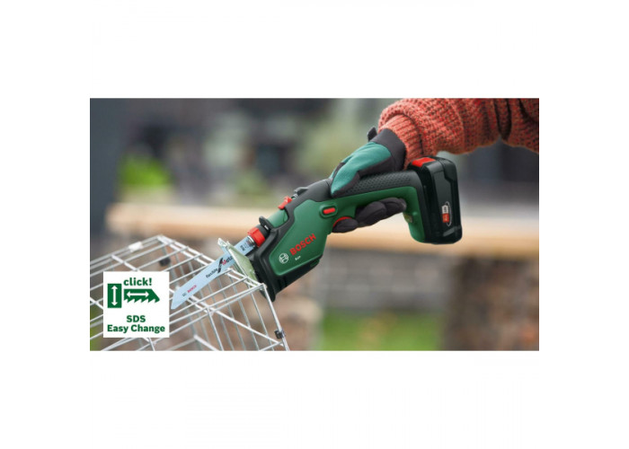 Bosch KEO 18 Li – побутова шабельна пила для використання в саду і домашньому господарстві. Живиться від літій-іонної акумуляторної батареї 18 В (в комплект не входить), розвиває швидкість до 2300 ход/хв. В моделі використовується полотно довжиною 150 мм, яке дає змогу пиляти деревину завтовшки до 80 мм.