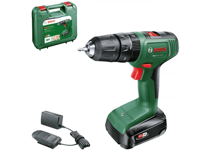 Дрель-шуруповерт Bosch EasyImpact 18V-40 | 1 аккумулятор на 18 В (емкостью 2 Ah) | Зарядное устройство AL 18 V-20 | Кейс