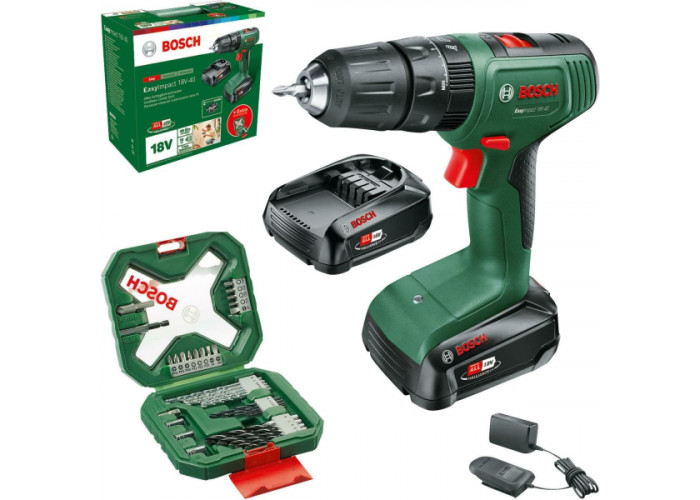 Дрель-шуруповерт Bosch EasyImpact 18V-40 | Набор X-line, 34 шт (2607010608) | 2 аккумулятора на 18 В (емкостью 2 Ah) | Зарядное устройство AL 18 V-20 | Кейс