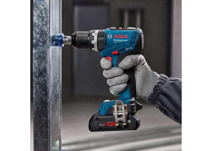 - Bosch Professional GSB 18V-65 — це універсальний акумуляторний ударний дриль-шурупокрут, створений для виконання складних завдань зі свердління та закручування кріплення. Сумісний з акумуляторами Bosch 18V, що забезпечує гнучкість у використанні та тривалий час автономної роботи.