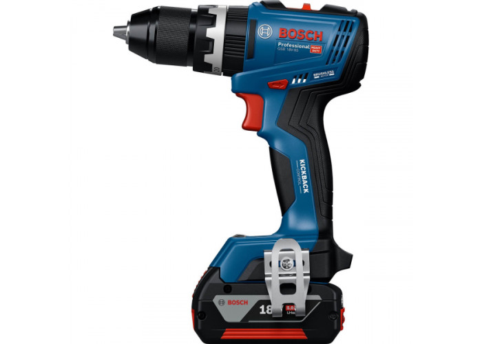 - Bosch Professional GSB 18V-65 — це універсальний акумуляторний ударний дриль-шурупокрут, створений для виконання складних завдань зі свердління та закручування кріплення. Сумісний з акумуляторами Bosch 18V, що забезпечує гнучкість у використанні та тривалий час автономної роботи.