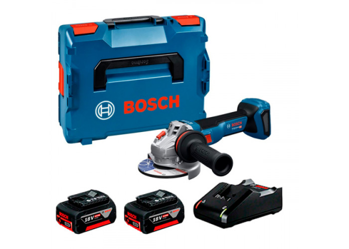 Угловая шлифовальная машина | Быстрозажимная гайка | Дополнительная антивибрационная рукоятка Vibration Control | Защитный кожух | Крепежный фланец | L-BOXX 136 | 2 акб GBA 18V 4.0Ah | з/у GAL 18V-40