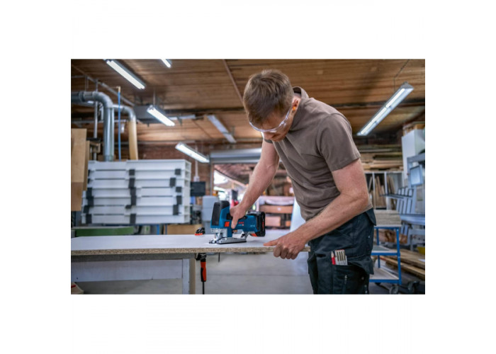 Потужний лобзик Bosch Professional GST 18V-155 SC живиться від літій-іонної батареї з напругою 18 В (відсутня в комплектації). 2-кілограмовий електроінструмент має безщітковий двигун, зручний перемикач із обох боків, систему протиударного відключення, функцію адаптивного контролю швидкості. Інструмент оснащений маятниковим ходом. Ефективно пропилює деревину (максимальна товщина заготовки 155 мм), алюміній (до 20 мм), сталь (10 мм) тощо. Довжина ходу пилки сягає 26 мм. Кількість ходів вимірюється у діапазоні 800-3800 ход/хв. Інструмент передає дані про свій стан через Bluetooth. Комплектується парою пиляльних полотен, всмоктувальною насадкою, захистом від розколювання деревини.