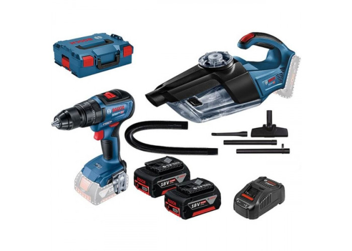 Акумуляторний набір Bosch Professional з ударного дриля-шурупокрута GSB 18V-50 в L-BOXX 102 та пилососа GAS 18V-1, з 2 акб GBA 18V 5 Ah і з/п GAL 1880 CV