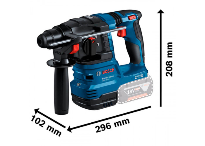 - Акумуляторний перфоратор Bosch Professional GBH 185-LI працює від 18-вольтового літій-іонного акумулятора (без акб в комплекті).