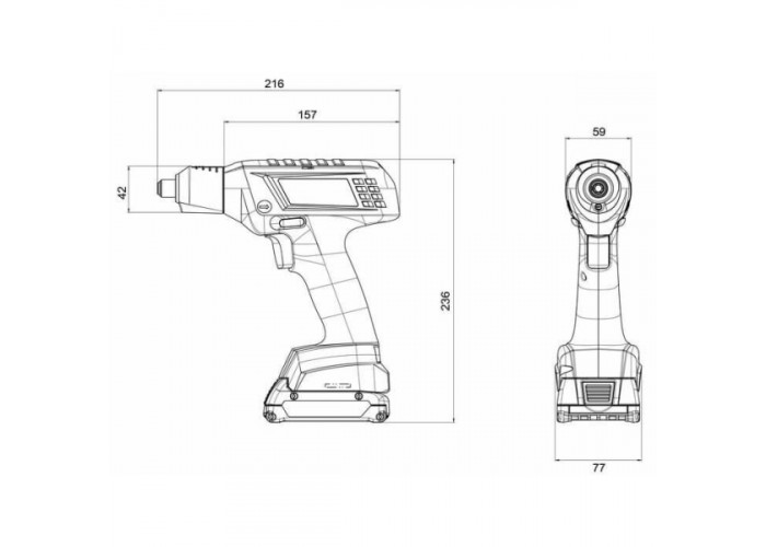 - Індикатор закручування відповідає за досягнення робочих показників. Зелений колір вказує, що розчіпна муфта спрацювала, червоний — не досягнуто обертального моменту.