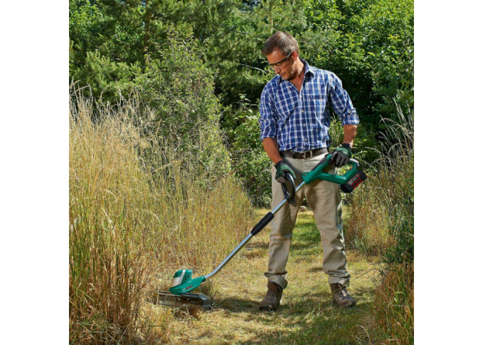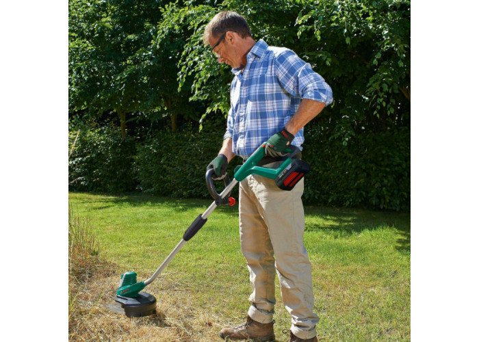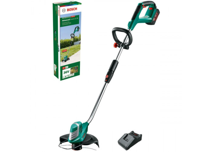 Bosch AdvancedGrassCut 36 – ергономічний інструмент високої потужності для скошування трави на середніх і великих ділянках. Живиться від літій-іонного акумулятора 36 В 2 Ah. Як ріжучий елемент використовується волосінь товщиною 1.6 мм. Ширина скошування за один прохід досягає 30 см. Важить апарат 3,1 кг.