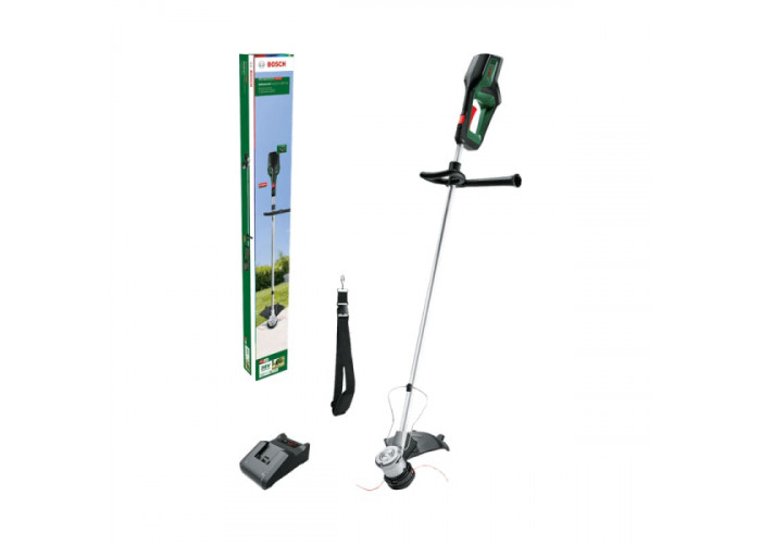 - Bosch AdvancedGrassCut 36V-33 живиться від літій-іонного акумулятора 36 В 2 Ah. Батарея належить до системи POWER FOR ALL, що робить її придатною для встановлення в різні інструменти Bosch.