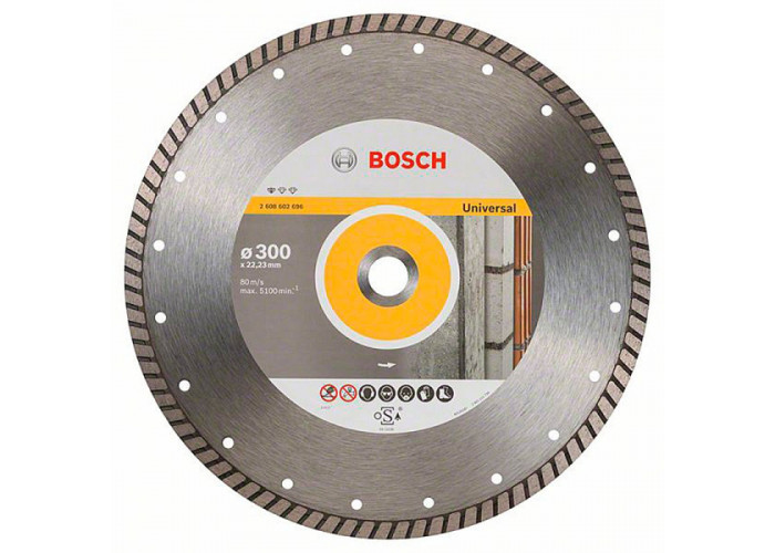 - Відрізний алмазний диск Bosch Standard for Universal діаметром 300 мм з посадкою 22,23 мм призначений для різання більшості будівельних матеріалів.