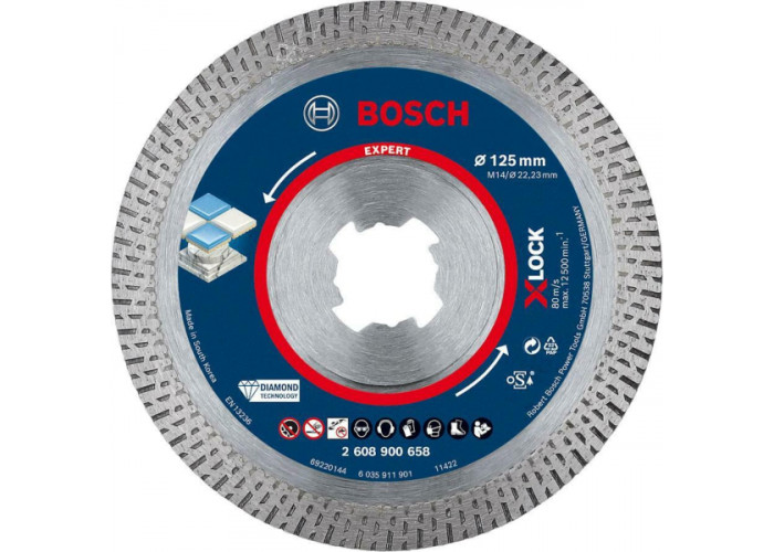 - Bosch Expert HardCeramic — диск діаметром 125 мм для професійних майстрів, призначений для роботи з твердою керамікою, плиткою і каменем з товщиною різу 1.4 мм. Забезпечує чудове різання, що гарантує професійну обробку під час роботи.