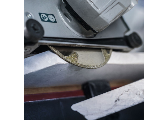 • Надійний, міцний відрізний диск 115 мм з гальванічним покриттям* ріжучого краю швидко та чітко, без тріщин і відколів матеріалу, ріже мармур, органічне скло, силікатна цегла, гіпс, гіпсокартон, піщаник і цементно-волокнисті плити.