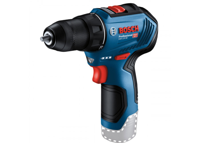 - Bosch GSR 12V-30 професійний шуруповерт-дриль від виробника BOSCH для роботи з деревиною і металом. Працює в режимі відкручування/закручування та свердління. У деревині сверлить перфорації 20 мм, в металі — 10 мм. Працює з шурупами до 8 мм. Забезпечує високу продуктивність при інтенсивній і тривалій експлуатації. Дозволить вирішити багато завдань в професійному середовищі та в побуті.