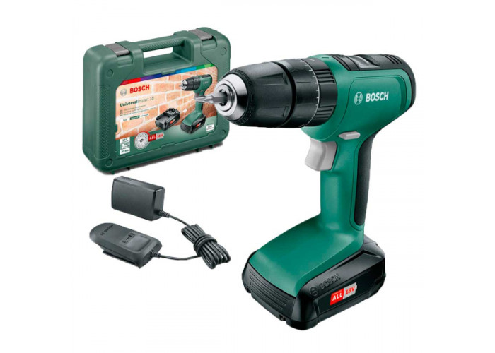 - Тут ви можете купити акумуляторний ударний дриль-шурупокрут Bosch UniversalImpact 18 в комплекті з одним Li-Ion 18 V акумулятором по 1,5 Ah і зарядним пристроєм AL 1810 CV.