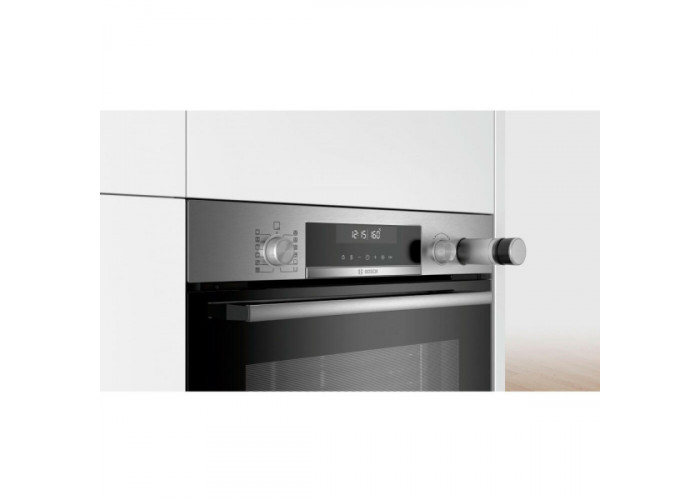 Вбудована духова шафа Bosch HRG5180S0 3.6 кВт, з 71-літровою камерою. Регулювання температури від 30 до 275 градусів. 10 видів нагріву: Vario-гриль великої площі, верхній/нижній нагрів, гаряче повітря, гриль плюс гаряче повітря, нижній нагрів, піца, стандартний нагрів. Швидкий розігрів. AutoPilot 30. LCD-дисплей із сенсорними кнопками. Телескопічні напрямні на двох рівнях.