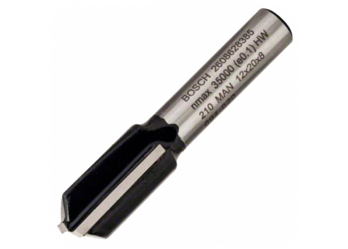 - Твердосплавна пазовая фреза з хвостовиком 8 мм діаметром 12 мм, робочою довжиною 20 мм та загальною — 51 мм — робоча насадка до вертикально-фрезерних машин.