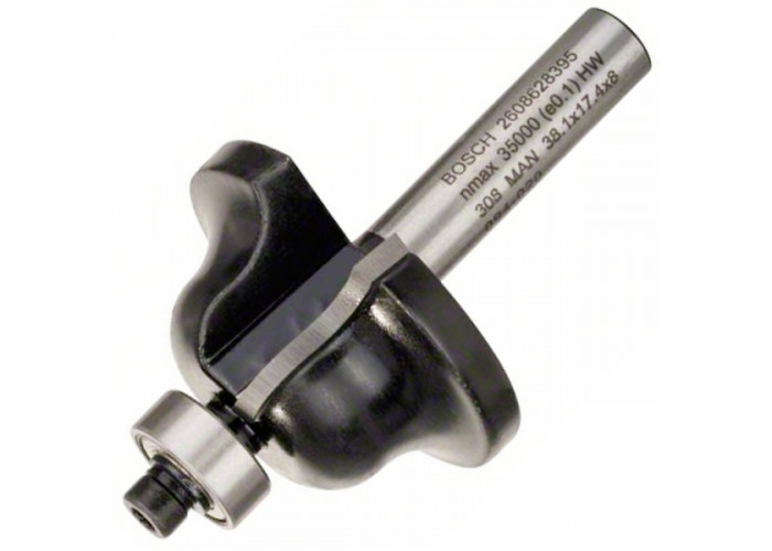Профільна фреза В з хвостовиком 8 мм, шириною 12,7 мм, робочою 17 мм та загальною довжиною 61 мм, з радіусом 6,3 мм — робоча насадка для вертикального фрезера при виконанні столярних робіт. Виготовлена з твердого сплаву, з двома лезами та з шарикопідшипником, фреза оптимально підходить для обробки кромок деталей, виготовлення обкантовок.