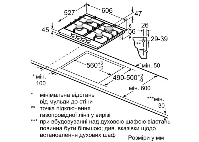 • Розмір ніші для вбудовування 45x560-562x490-502 мм.