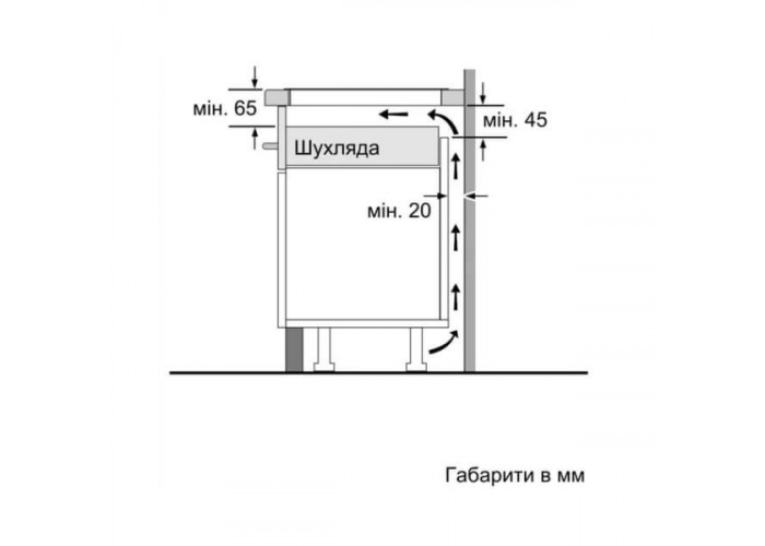 • Розмір ніші для вбудовування 51x560x490-500 мм.