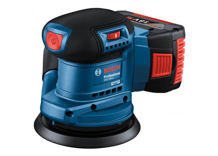 - Bosch Professional GEX 185-LI стабільна у роботі, розвиває високу потужність.
