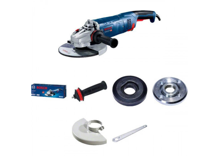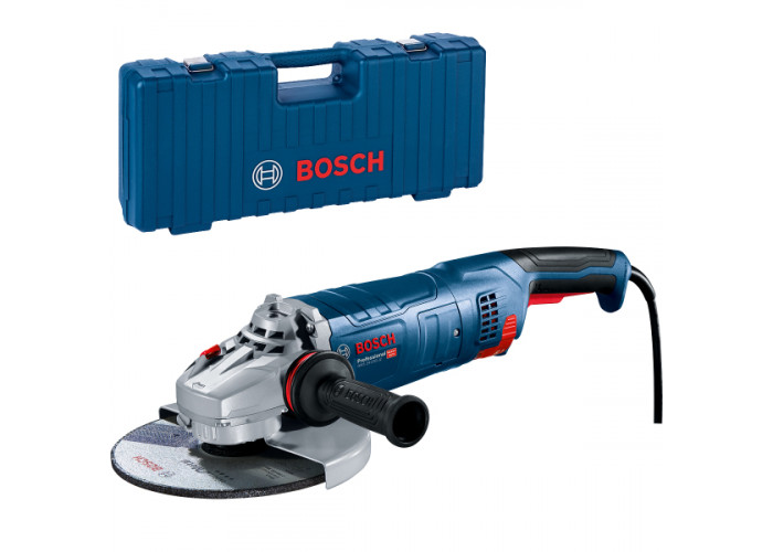 Угловая шлифмашина Bosch Professional GWS 24-230 JZ создана для профессиональных работ на производстве с металлом, камнем. Мощность щеточного двигателя — 2400 Вт (3.3 л.с). Оснащен мотор плавным пуском, где максимальное количество оборотов достигает 6500 об/мин. Работает с 230-миллиметровым диском, с резьбой шпинделя М14. Болгарка имеет встроенную систему очистки воздуха (Cyclon), технологию Heavy Duty, эргономичную конструкцию, защиту от случайного пуска. Весит болгарка 6 кг. Доставляется с ключом для замены расходного материала, зажимной гайкой, защитным кожухом и т.д.