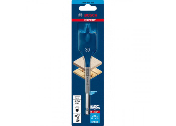 Сверло перовое Bosch Expert Self Cut Speed Spade — специально разработано производителем для изготовления глубоких отверстий в древесине, гипсокартоне, легких стройматериалах. Использована технология Bosch Tip Technology.