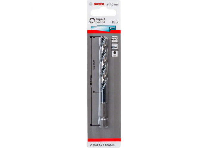 Описание сверла по металлу Bosch Impact Control HSS, HEX 7x109 мм: