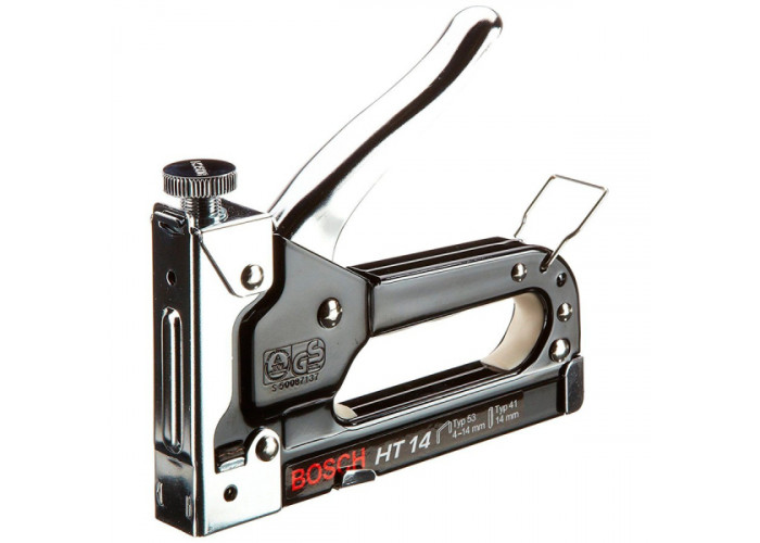 Такер ручной механический Bosch HT 14 — механический скобозабиватель Bosch HT 14 с механической регулировкой силы удара и стандартной скобой 53 типа (длинна скобы 4-14 мм ширина 11,4 мм), предназначен для быстрого скрепления различных тканей, проволочной сетки, обивки мягкой мебели и тд. Подходит для штифтов типа 41, длиной 14 мм. Обратите внимание, инструмент для домашних работ и используется для несложных задач.