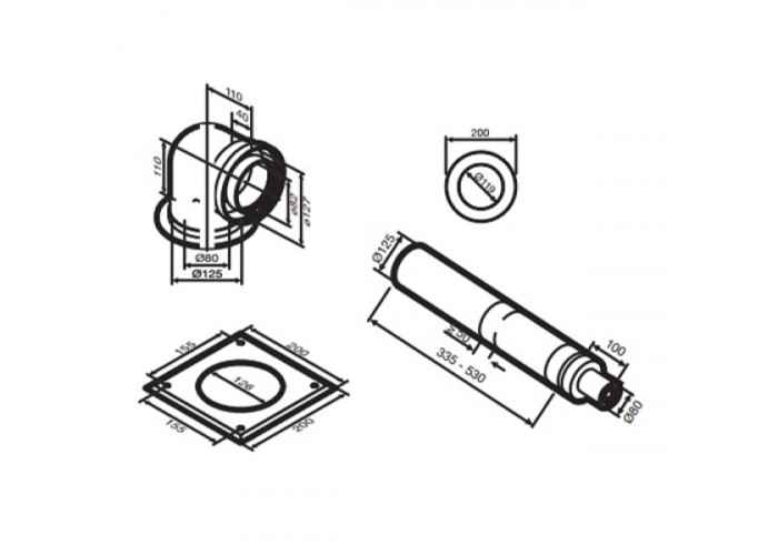 Відведення 90°; Подовження 335-530 мм, Ø80 / 125.