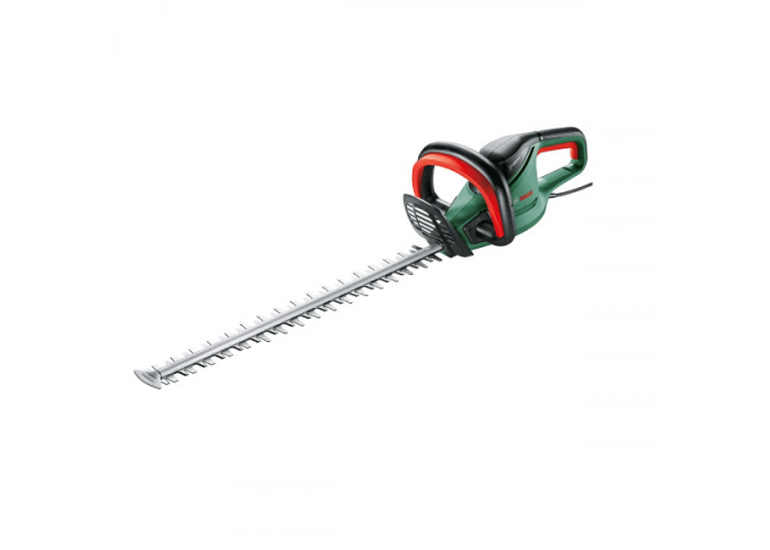 Bosch UniversalHedgeCut 50 – побутовий інструмент для догляду за кущами та живоплотом. Кущоріз 480 Вт живиться від мережі 230 В і розвиває швидкість різу до 3400 хо/хв. Довжина двостороннього ножа становить 50 см, крок між лезами – 26 мм. Важить інструмент 3,5 кг.