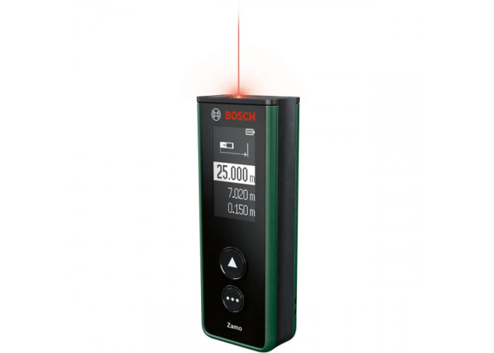 Bosch Zamo IV (0603672900) — это компактный и удобный лазерный дальномер для точных бытовых измерений, идеален для замеров в помещениях при ремонте, декоре или установке мебели, измеряет расстояния до 25 метров с точностью ±2 мм, поддерживает сменные адаптеры (ленточный, колесный и нивелирный — приобретаются отдельно), управление одной кнопкой делает его максимально простым в использовании, встроенный дисплей четко отображает результаты, функция автоматического выключения экономит заряд батареи, благодаря инновационной системе Bosch Zamo 4 возможны дополнительные измерения окружностей, неровных поверхностей и уровней, лазерный класс 2 обеспечивает безопасность при работе, купить лазерный дальномер Bosch Zamo IV с официальной гарантией и доставкой по Украине можно на сайте bosch-tools.com.ua