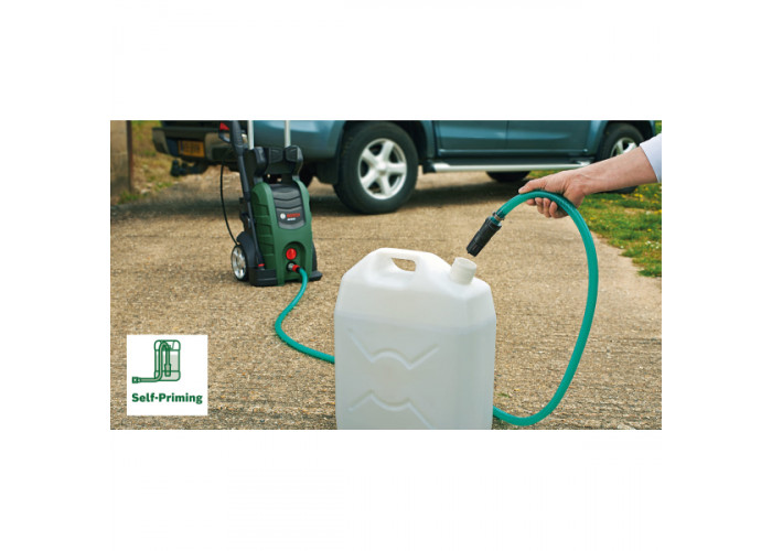 - Самовсмоктувальний, виконаний з металу, потужний насос 125 бар для ефективного очищення. Може подавати воду до +40 градусів із системи водопостачання та резервуарів.