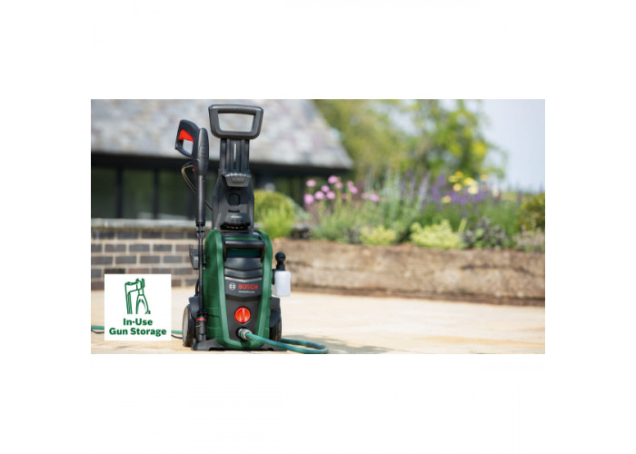 - Простий у підключенні та експлуатації апарат Bosch UniversalAquatak 125 підходить для миття двору, терас, легкових авто, садових меблів та інвентарю.