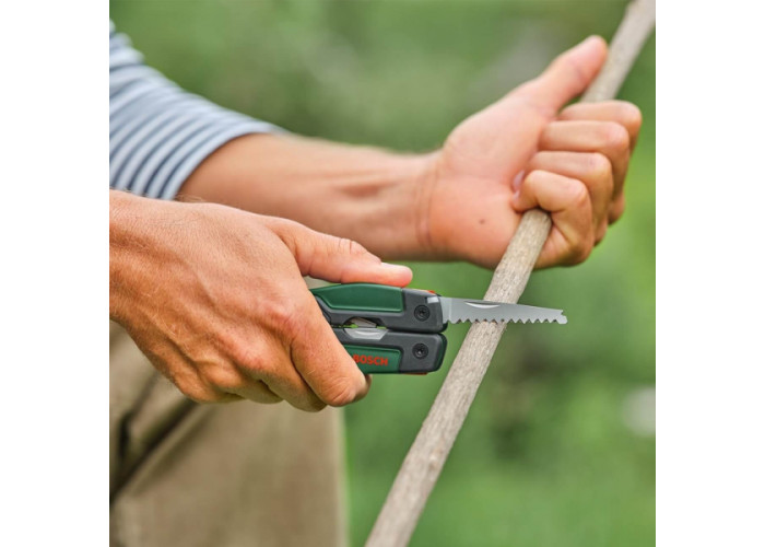 Багатофункціональний інструмент 16-в-1 від Bosch — це незамінний помічник для виконання повсякденних завдань вдома або в подорожах. Він поєднує в собі 16 функцій, включно з: плоскогубцями для фіксації та захоплення, пилкою для точного різу матеріалів, викрутками різних форматів для роботи з кріпленням, ножем для різання різних матеріалів, напилком для шліфування, відкривачкою для пляшок, консервним ножем та іншими інструментами.