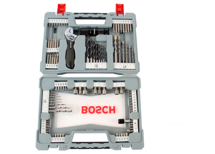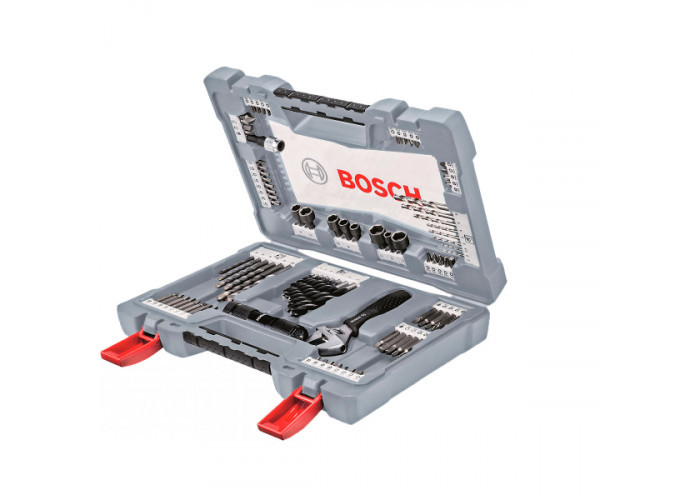 Набір Bosch Premium Mixed Set з 91 насадки і приладдя для загвинчування, свердління в деревині, металі та бетоні. У комплект увійшли свердла по бетону CYL-3 діаметром 4/5/6/6/8/10 мм, свердла по металу HSS-G діаметром 2x2/2,5/2x3/4/5/6 мм, свердла по дереву 3/4/5/2x6/7/8/10 мм, втулки 6/7/8/9/10/11/12/13 мм, біти довжиною 25 мм — 2xPH0, 2xPH1, 4xPH2, 3xPH3, 2xPZ0, 2xPZ1, 3xPZ2, 3xPZ3, S 5, 3xTX10, 3xTX15, 3xTX20, 3xTX25, 2xTX30, 1xTX40, H 5/6, біти довжиною 50 мм — PH 0/1/2/2/3, PZ 0/1/2/2/3, S 5/6, T15 / 20/20/25, H 5/6, а також універсальний магнітний тримач біт, зенкер, ліхтарик. Міцна упаковка для зберігання предметів.