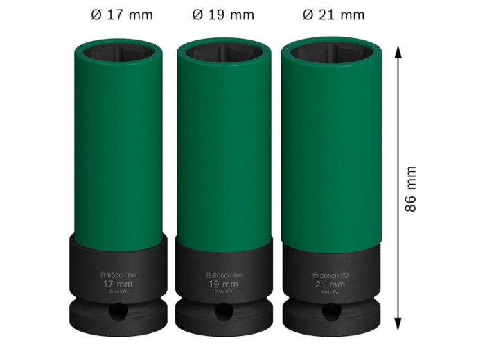 Набір ударних торцевих головок Bosch Pro Impact Socket Extra Deep Set 1/2 17-21 мм, 86 мм, 3 шт