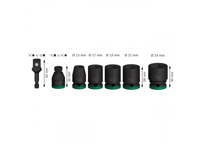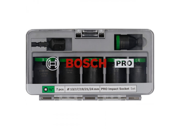 Набір ударних торцевих головок Bosch Pro Impact Socket Standard Set 1/2 13-24 мм, 38-40 мм, з адаптерами, 7 шт