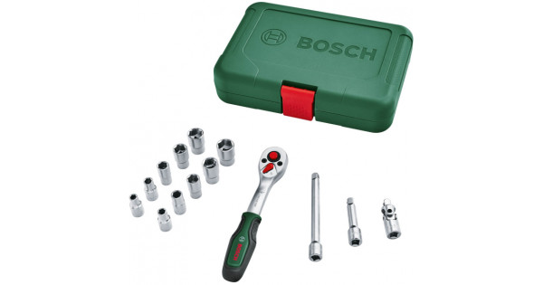 Набір тріскачки 1/4 з торцевими головками, адаптером та подовжувачами Bosch, 14 шт