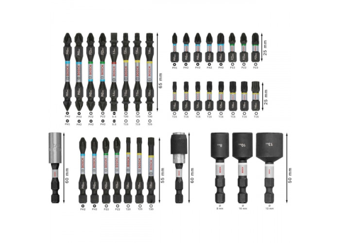 25 / 55 / 65 (биты) | 60 (держатели) | 50 (торцевые головки)
