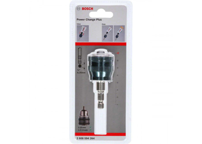 Адаптер з шестигранним хвостовиком діаметром 8,7 мм підходить під свердлильні патрони 1-10 мм та 1,5-13 мм для роботи з коронками. Безключове Power-Change Plus з`єднання.