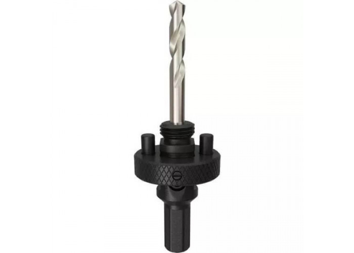 - Адаптер Bosch з центральним свердлом призначений для коронок діаметром 32–210 мм та довжиною 44 мм, оснащений шестигранним хвостовиком, що забезпечує надійне кріплення коронок вказаного розміру у патроні дриля.