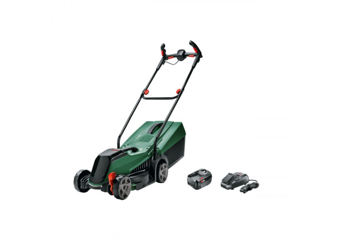- Працює на літій-іонному акумуляторі PBA 18 V 4,0 Ah, що входить до комплекту, дає змогу автономно, без шкоди для екології та без прив'язки до електромережі доглядати за газонами площею до 300 м².