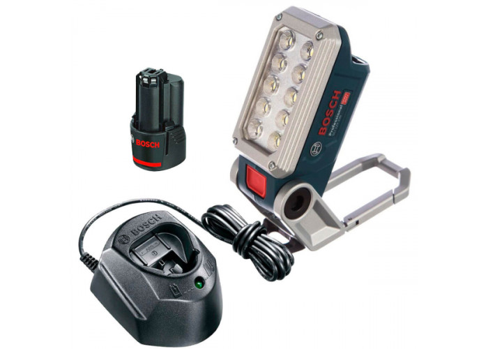 Практична LED-лампа GLI 12V-330 BB з двома рівнями яскравості для ідеального освітлення робочої зони. Яскравість 350 lx. Працює на літій-іонному акумуляторі напругою 10,8 В. Доставляється в картонній упаковці з акумуляторним блоком GBA 12V 2 Ah та зарядним пристроєм GAL 1210 CV.