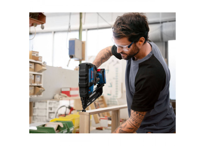 - Деревина не пошкоджується, якщо вистрелити Bosch GNH 18V-64 M із порожнім магазином, який може вміщувати 105 цвяхів. Полягає захист в блокуванні на штовхачі магазину.